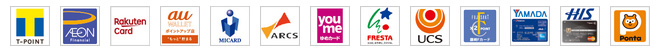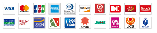 お支払い方法は、現金の他に以下のクレジットカードなどでお支払いが可能です。